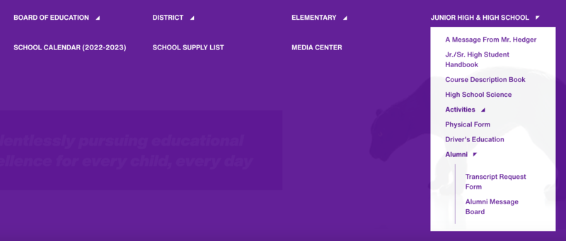 Take a couple minutes to explore the links in the menu, just to see what is available to you. Resources that apply to both elementary and secondary families can be found under the District menu.